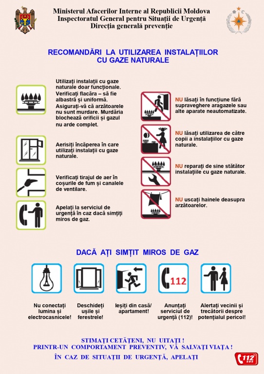 În caz de situații de urgență, apelați imediat Serviciul 112.