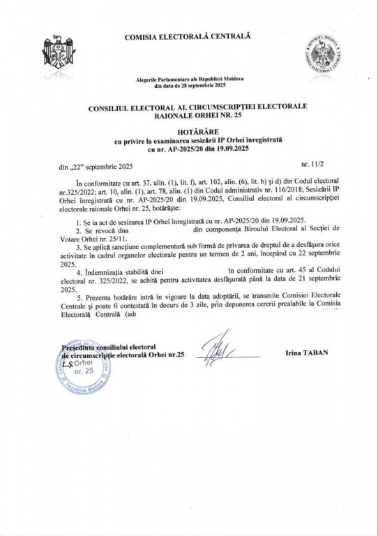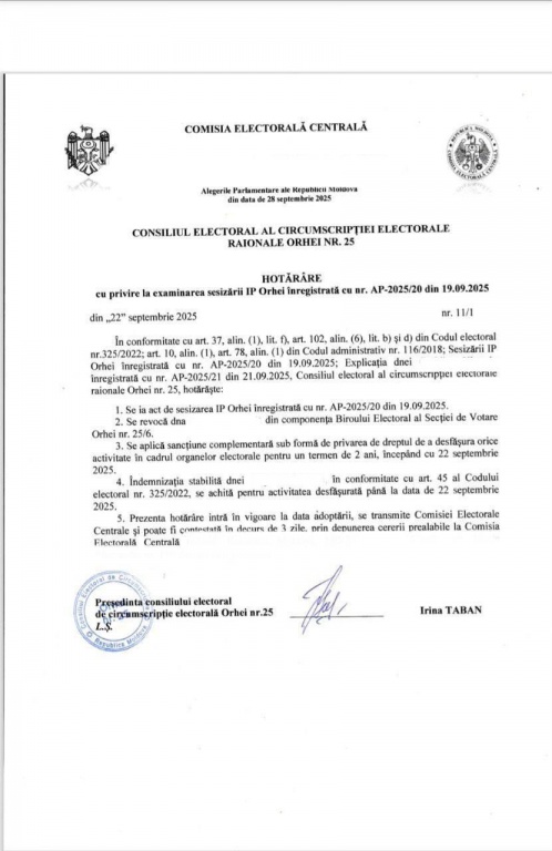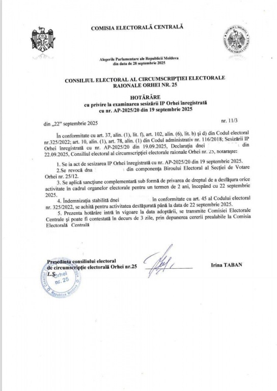 Potrivit ei, motivul invocat de Consiliul Electoral al circumscripției Orhei, conform căruia „există motive să se creadă că aceștia anterior au susținut alt partid”, este absolut neprofesionist și ilegal.