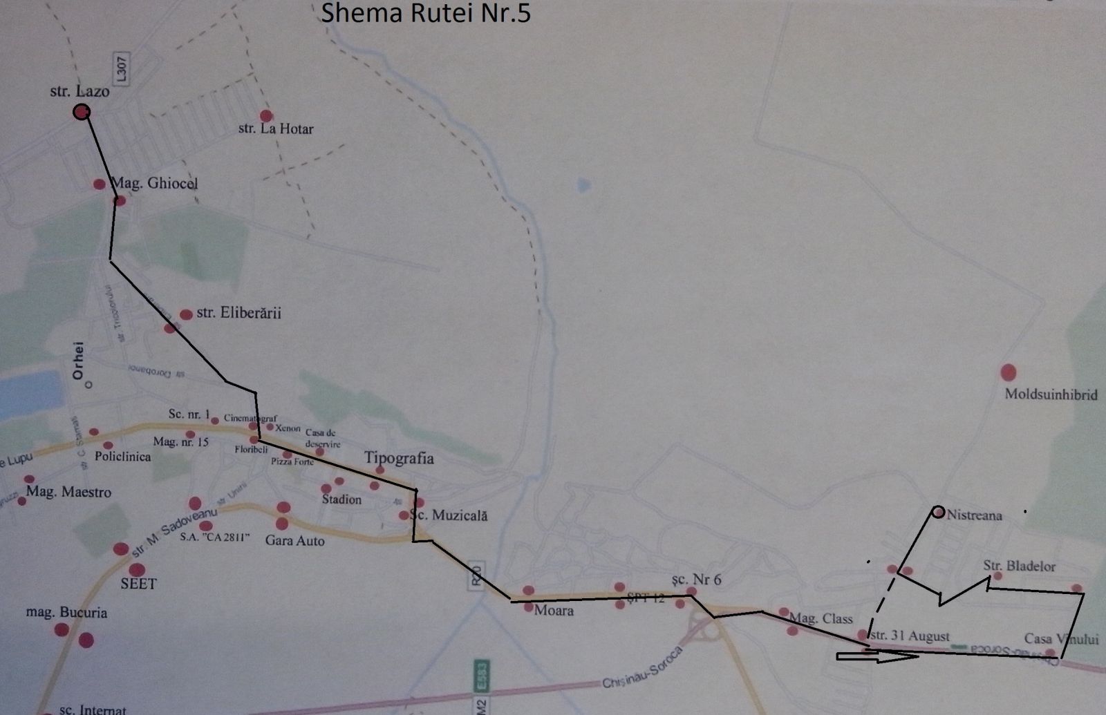 În legătură cu faptul că fluxul de călători pe str. Tricolorului este mic, începând cu data de 01.10.2014 ruta nr. 5 va circula numai la ora 6:30 din sectorul „Lupoaica” cu întoarcerea la ora 7:00 din sectorul „Nistreana” pe străzile Eliberării, Vasile Lupu, 31 August și Nistreana.