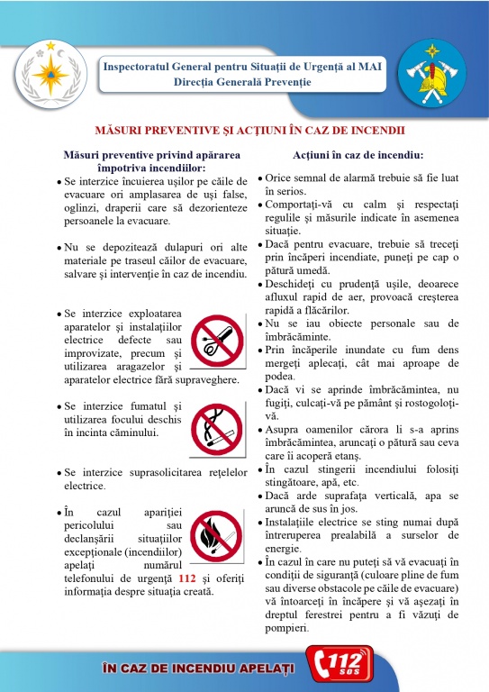 În caz de situații de urgență, apelați imediat Serviciul 112.