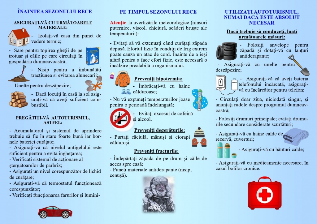 măsuri de precauție în caz de viscol sau temperaturi scăzute;