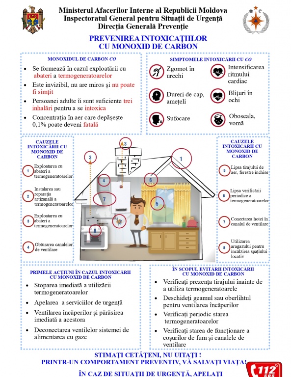 acțiuni de prevenire a intoxicațiilor cu monoxid de carbon;